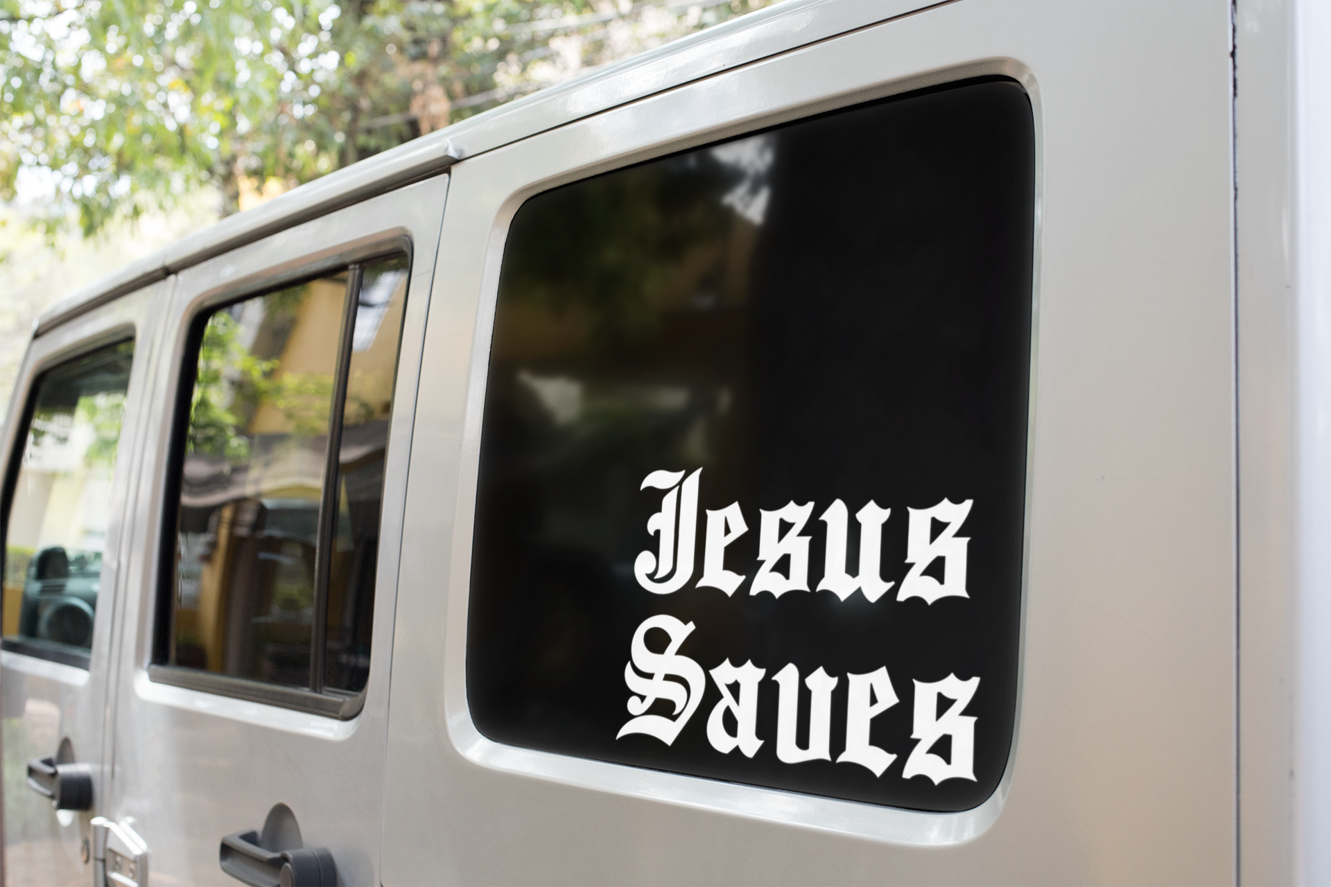 This white vinyl decal features classic lettering and a simple, powerful message of faith.