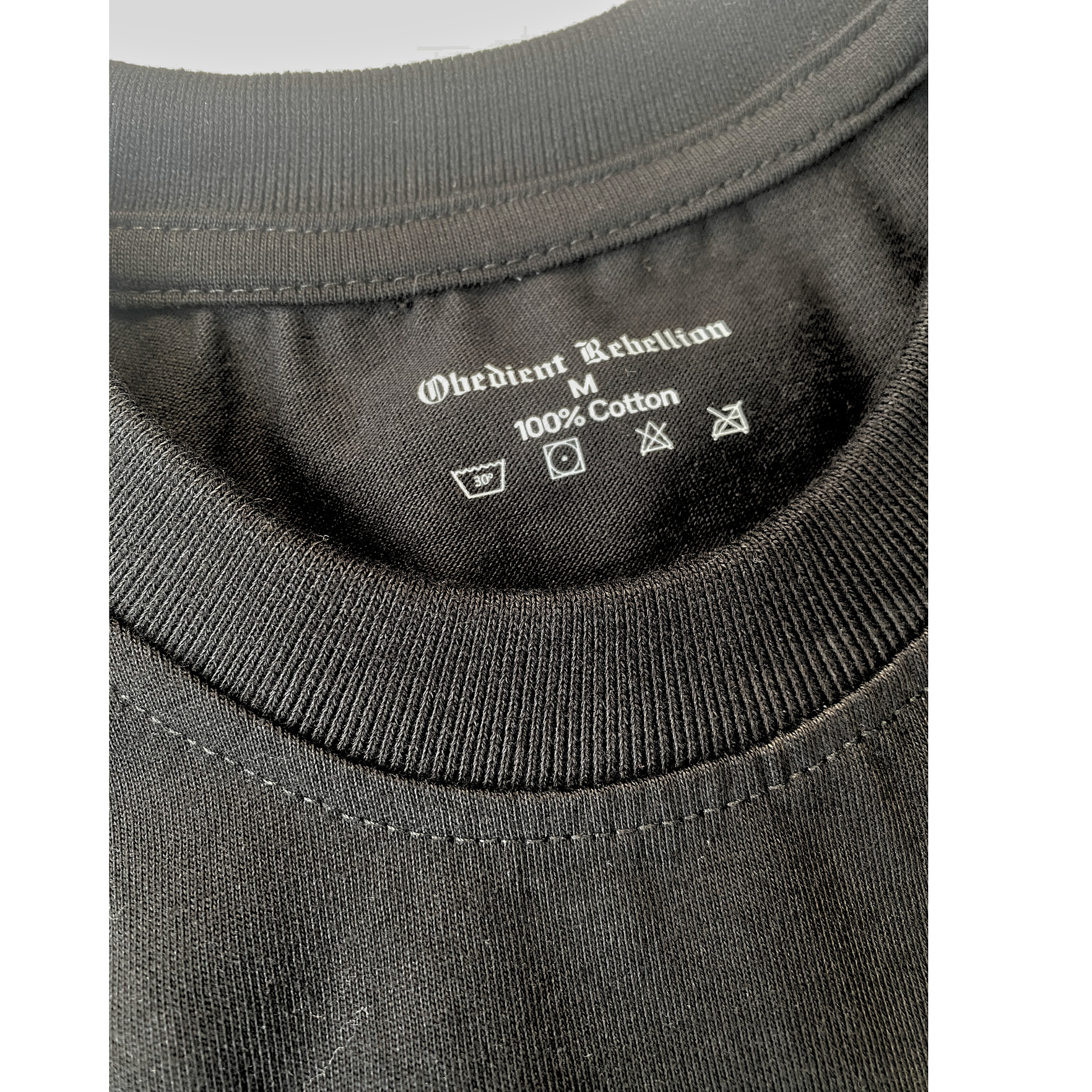 A premium black tee featuring a raised Jesus Saves puff-print graphic in Old English lettering. Built for everyday wear with a clean relaxed fit and subtle hem branding.