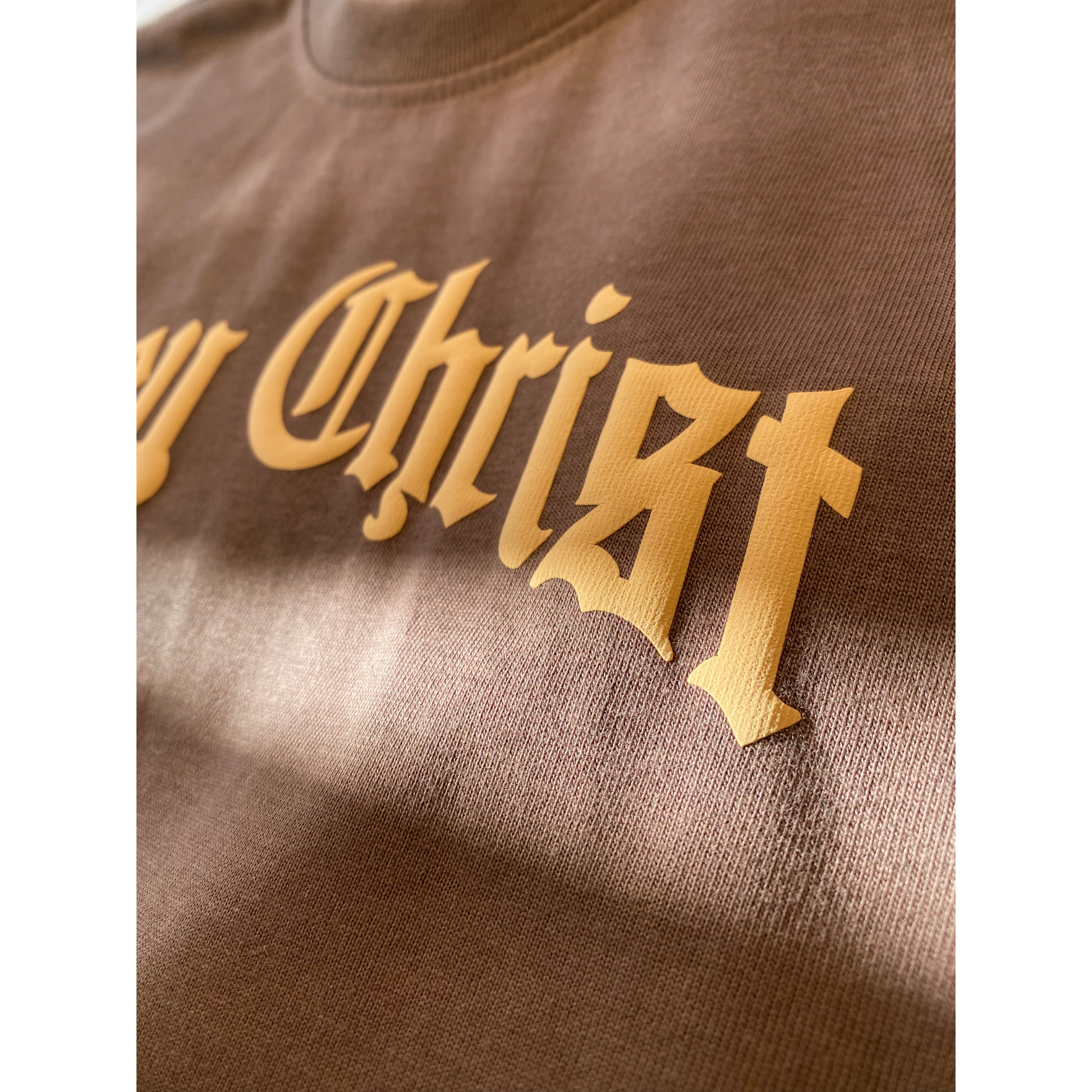 Print: Beige Puff Print (raised textured lettering)