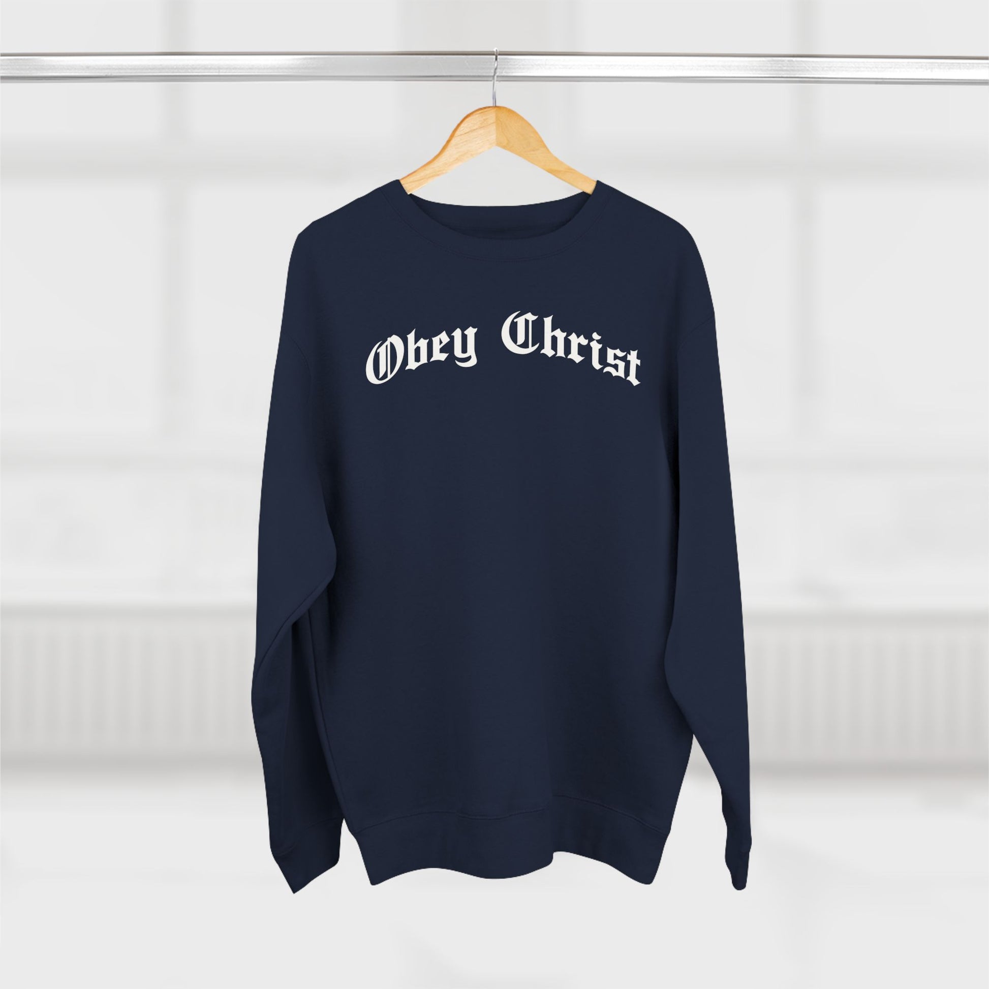 The Obey Christ Sweatshirt from Obedient Rebellion features bold Old English style lettering across the chest, blending streetwear aesthetics with faith-inspired design. Crafted for comfort and durability, this premium fleece sweatshirt is built for everyday wear and layering.