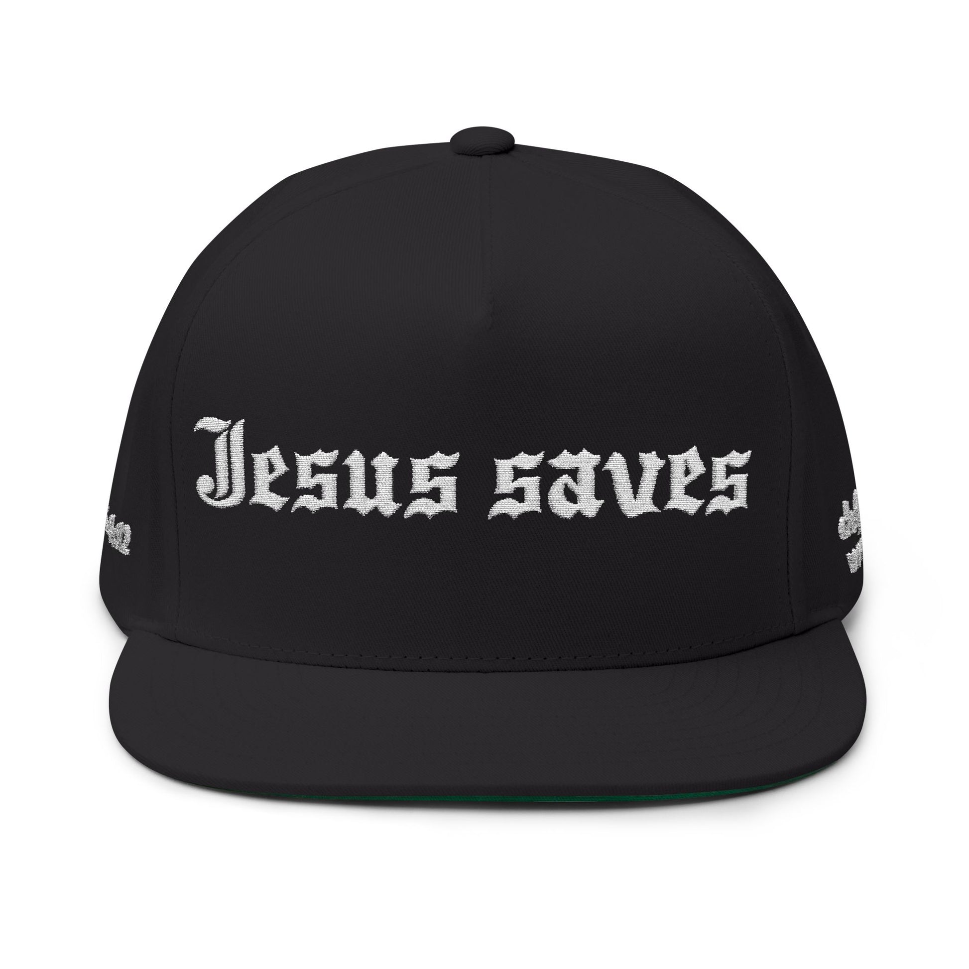 Stand bold in your faith with this Jesus saves flat bill snapback hat. Crafted with high-quality embroidery, this Christian cap blends streetwear style with a powerful message. Perfect for daily wear, ministry events, or as a meaningful gift, this hat features a structured fit, flat brim, and adjustable snapback closure for comfort and durability.
